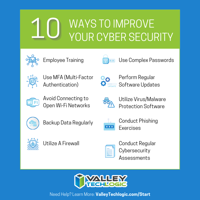 Proactive services (including cyber security) are a keystone offering for Valley Techlogic. With ransomware threats becoming more sophisticated and lucrative year over year, you need a team behind you to protect against outside threats. Below are five ways Valley Techlogic approaches cybersecurity protection for our clients: