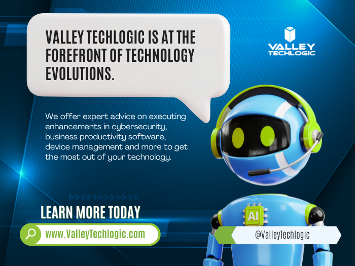 Looking to improve your business with AI strategies or take advantage of AI advancements in cyber security including enhanced monitoring, threat detection and real time solutions? Valley Techlogic remains at the fore front of new technologies, and we can assist you in navigating AI solutions for your business. Learn more today.