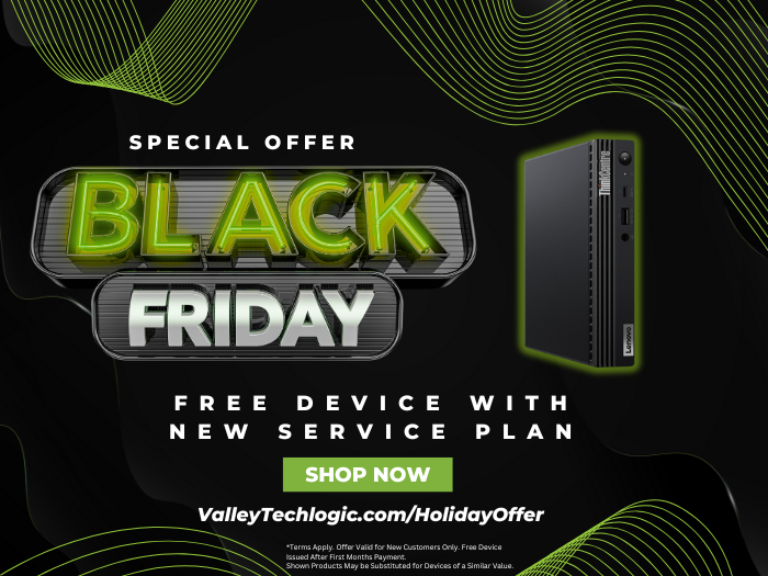 Cyber security protections are a key piece of the services provided by Valley Techlogic under our technology support plans, at no additional cost. For the holidays we’re also offering a free device for new customers, take advantage of great service and a great holiday offer, partner with Valley Techlogic today.